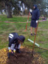| November 21, 2010 Native Oak Woodland planting in Roseville. Today we got up early in the rainy morning and helped the Sacramento Tree foundation plant 200 little oak trees in a Roseville park. I only lasted about an hour before calling it quits and staying dry in the car. Mom and Dad finished up the next hour without me. (1 hour)